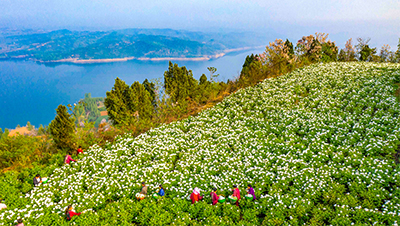 河南省洛阳市新安县仓头镇郭庄村牡丹种植基地内,花农忙着采摘牡丹花。
