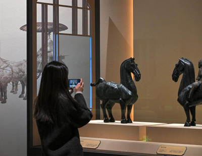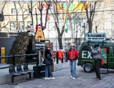 1月8日,游客在官鹅沟景区赏冰拍照。