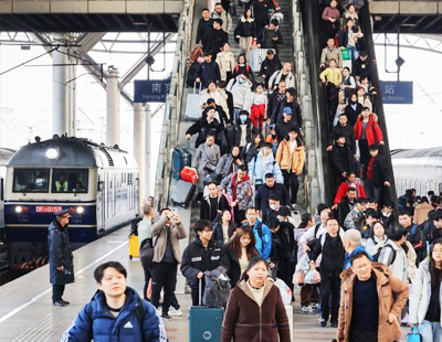 1月11日凌晨,中国铁路郑州局职工在对济郑高铁郑州万滩黄河公铁大桥进行检查养护作业,为春运期间旅客安全出行保驾护航。(王玮摄/光明图片)