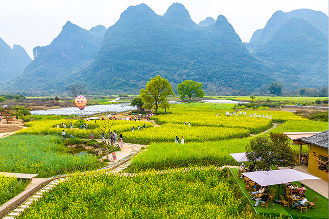 近日,广西柳州市融安县潭头乡梨花盛开,吸引游人前来游玩拍照。