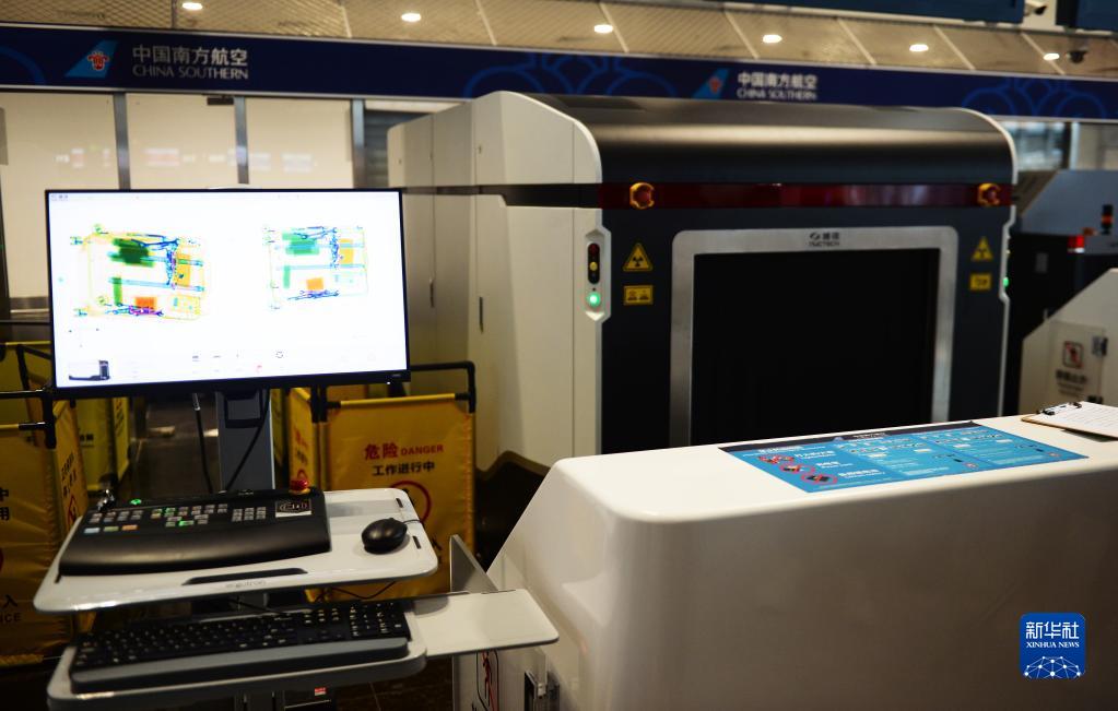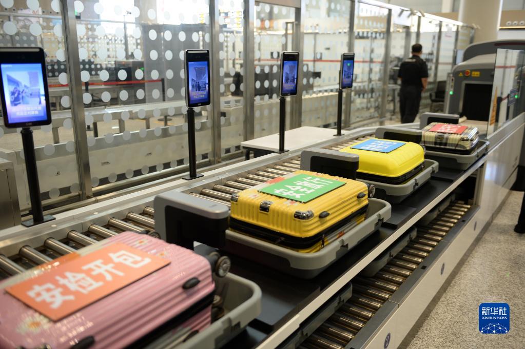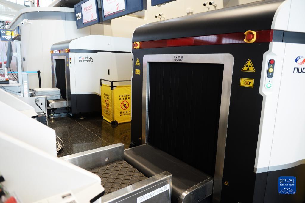 这是6月25日在美兰国际机场拍摄的已安装完毕的国内航班申报柜台托运物品查验设备。