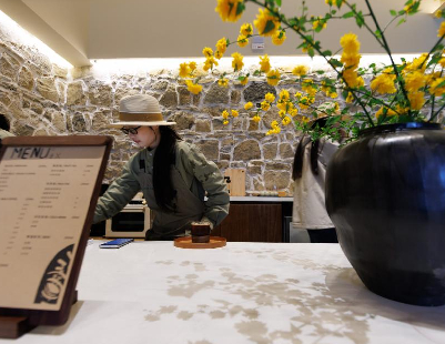 8月10日晚,江苏南京,年轻人身着古装在金陵小城·燕集里拍摄照片。金陵小城·燕集里位于牛首山文化旅游区,移步易景的场景变化再现金陵(南京古称)盛景。