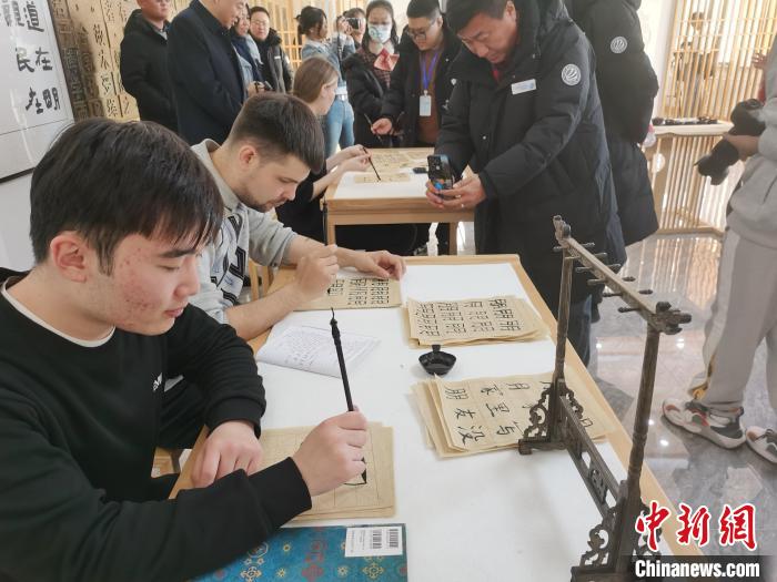 中新网满洲里11月14日电 题:探访在“国门学府”研习书法的留学生