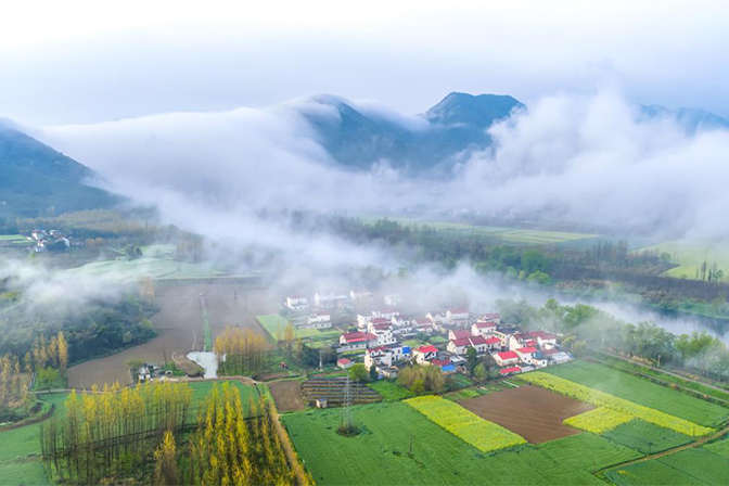 图为瞻淇鱼灯表演队伍在村中嬉游。(无人机照片)中新社记者韩苏原 摄