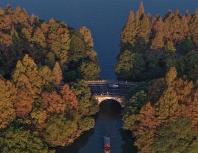 中秋佳节,一轮明月从夕阳和薄雾下的武汉黄鹤楼上缓缓升起,吸引了众多市民前来观看。