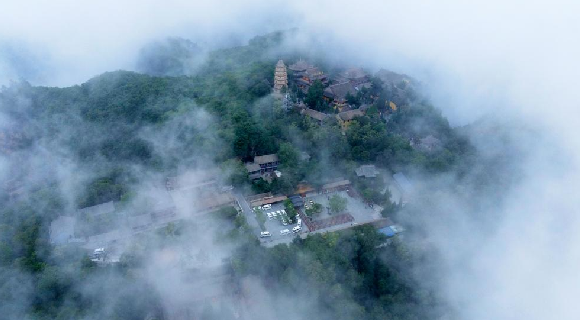 这是2025年7月11日拍摄的平凉市崆峒山雨后云海美景(无人机照片)。