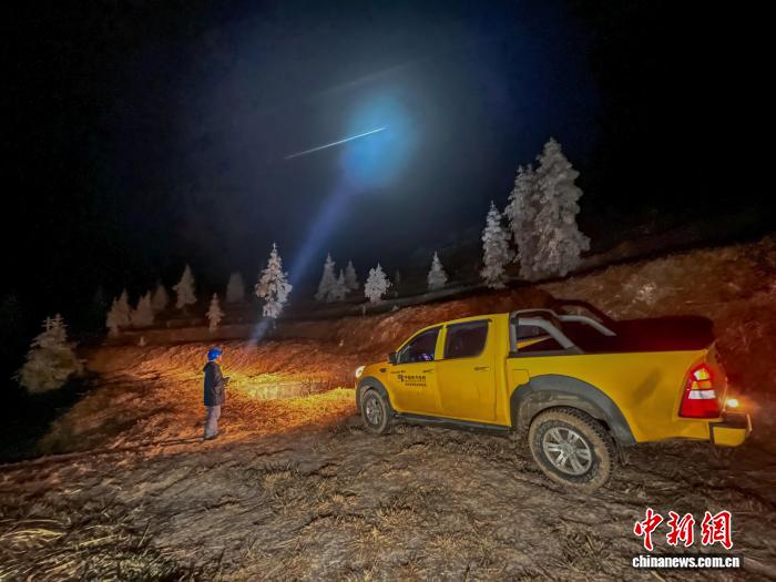图为南方电网贵州遵义务川供电局工作人员对10千伏浞栗线开展覆冰和测温巡视。王君辉 摄