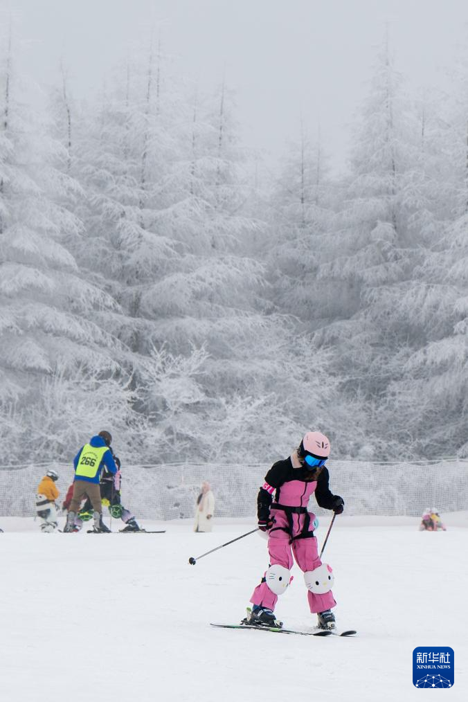 1月20日,游客在神农架国际滑雪场滑雪。新华社记者 杜子璇 摄