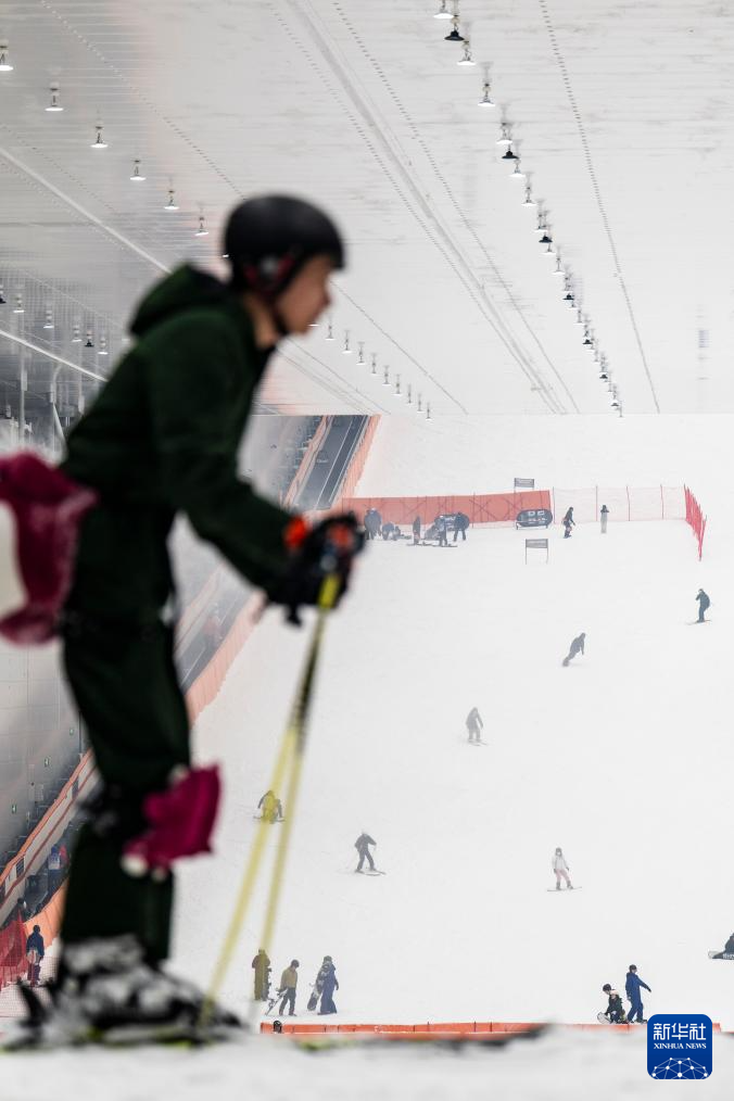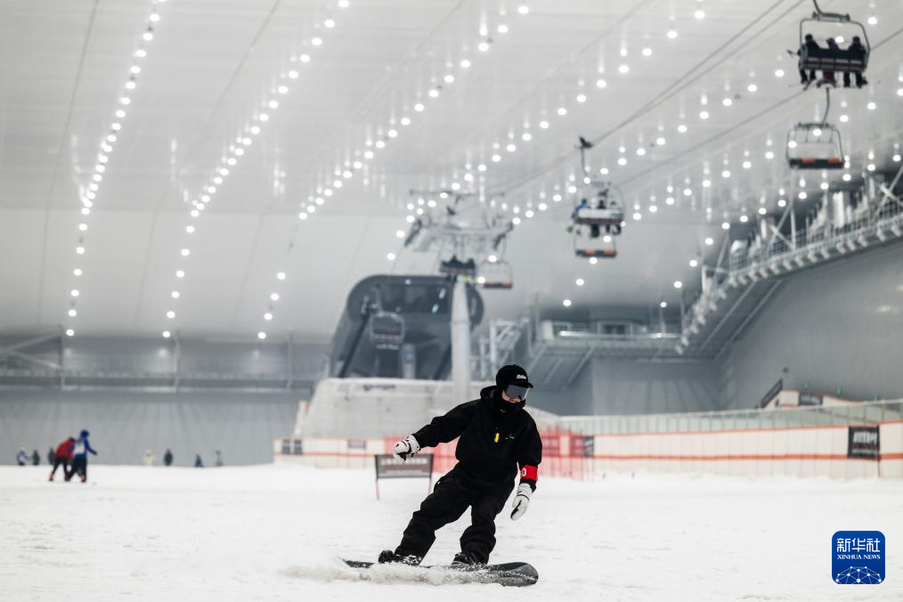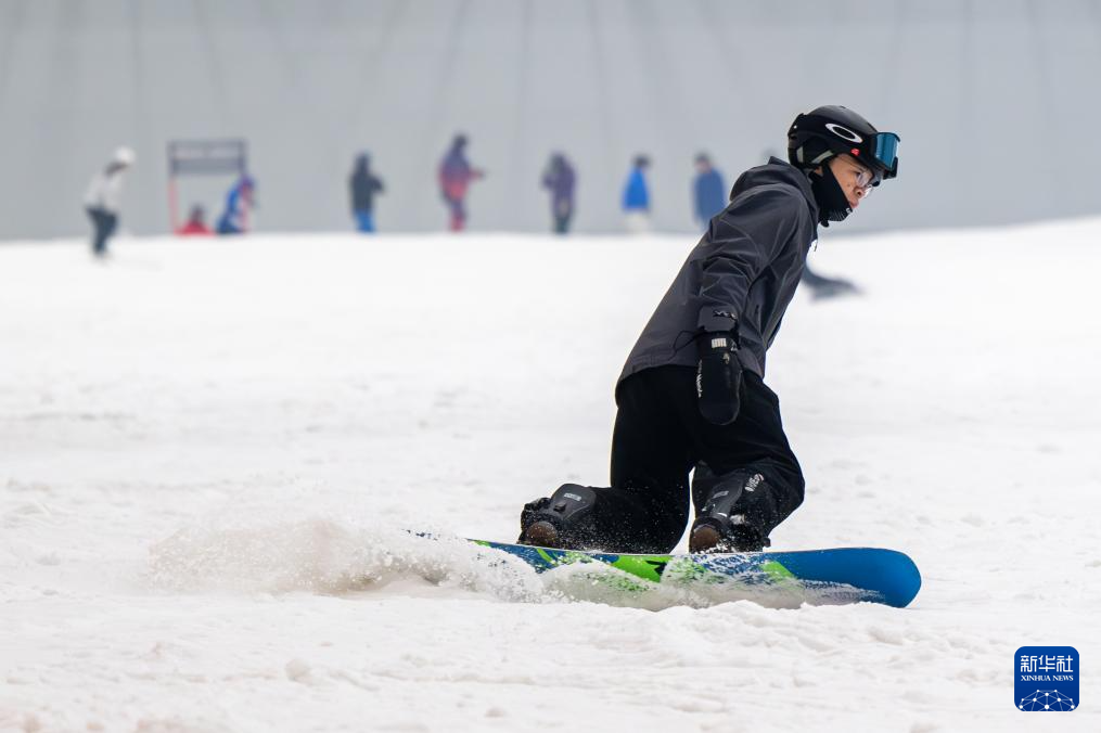 1月13日,游客在武汉城建热雪奇迹室内滑雪场滑雪。新华社记者 杜子璇 摄