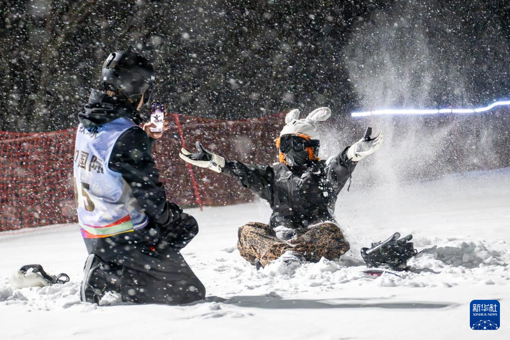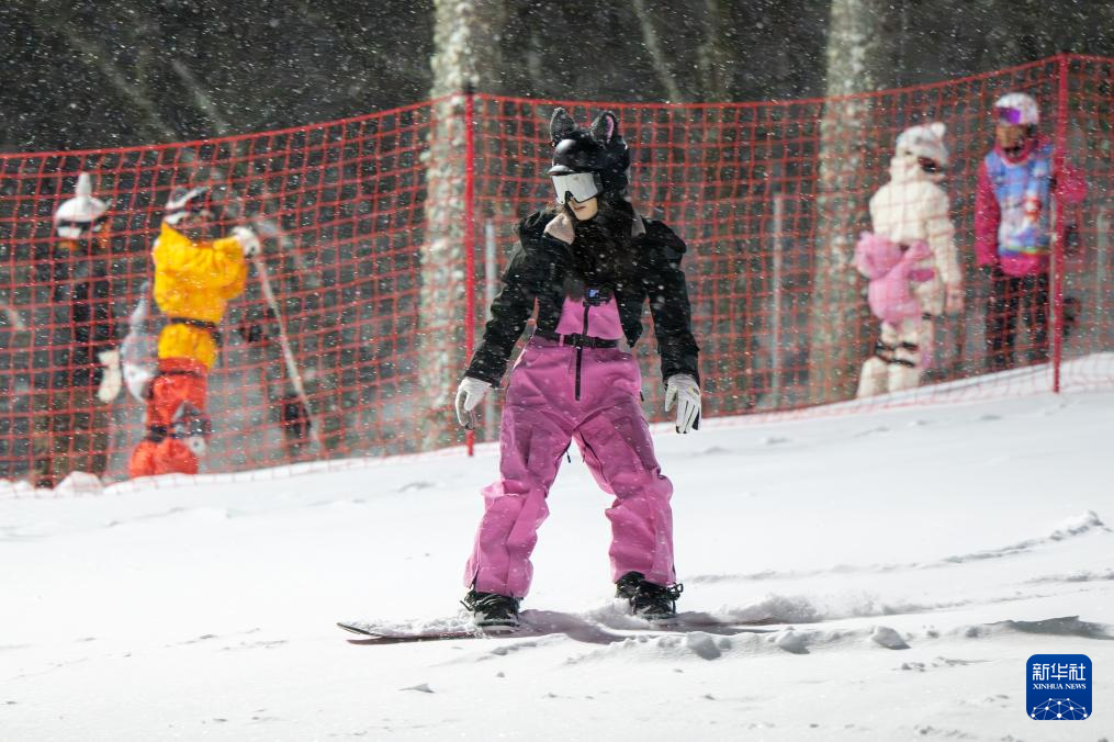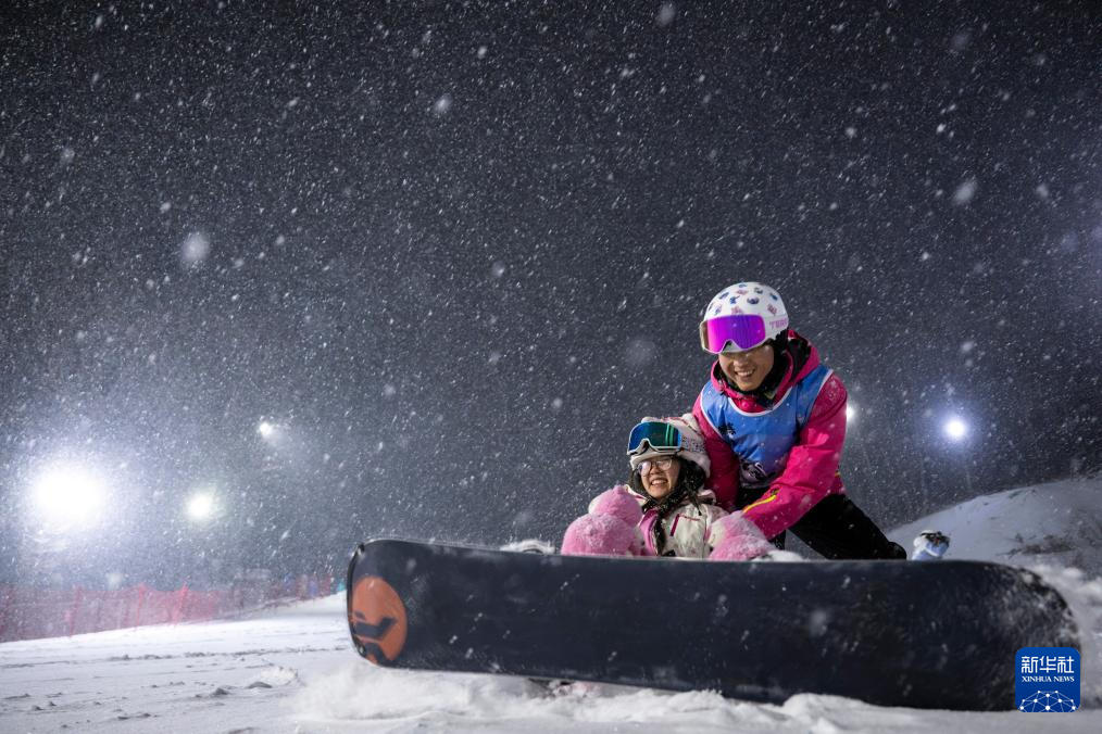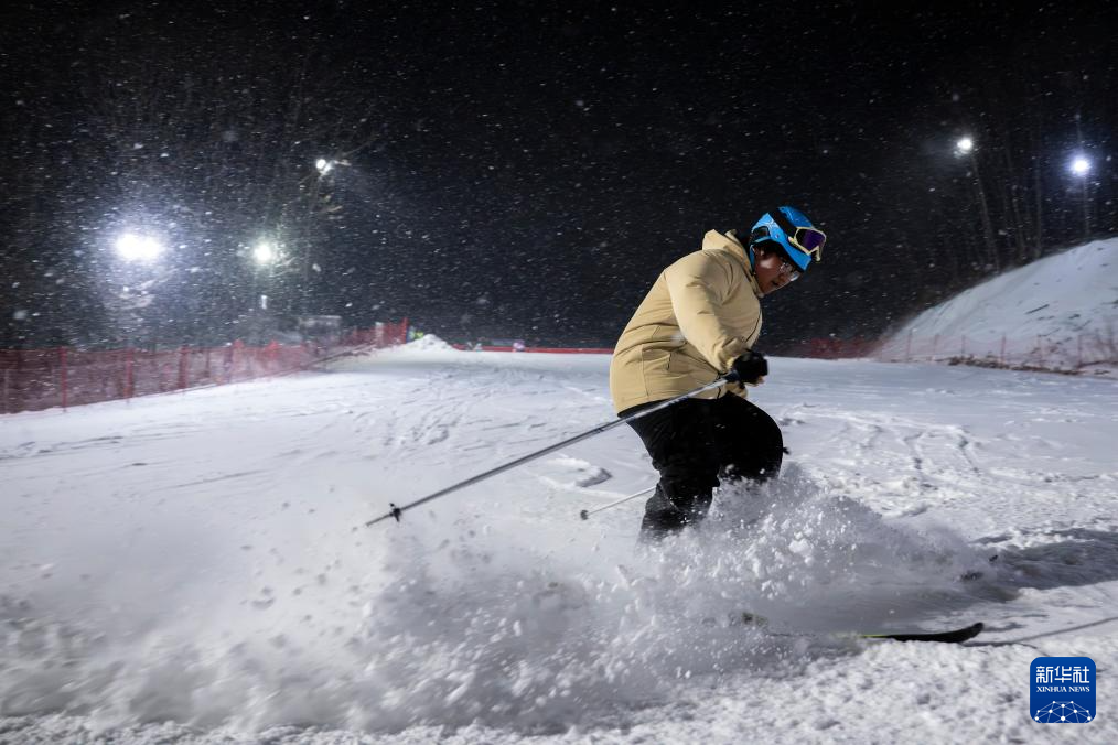 1月19日,游客在神农架中和国际滑雪场体验夜场滑雪。新华社记者 杜子璇 摄