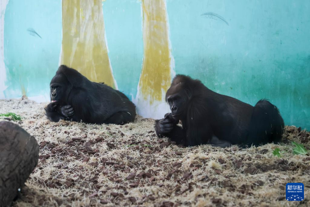1月21日,大猩猩在铺设地暖的房间里休息。