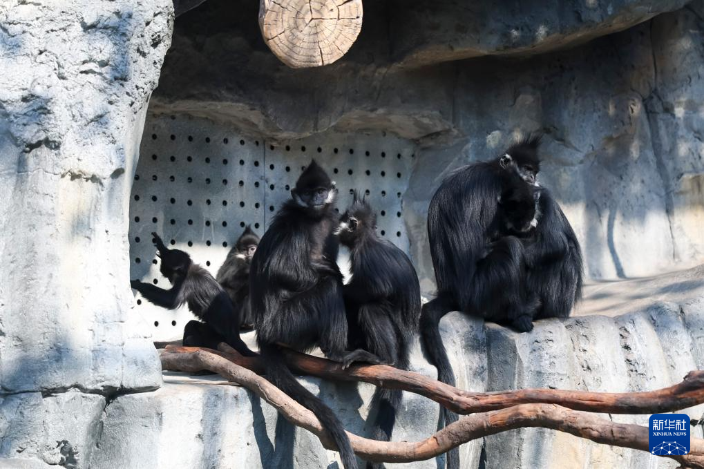 1月21日,黑叶猴在室内空调出风口取暖。