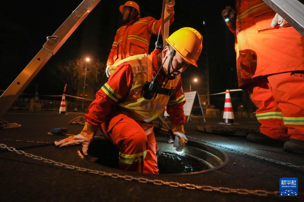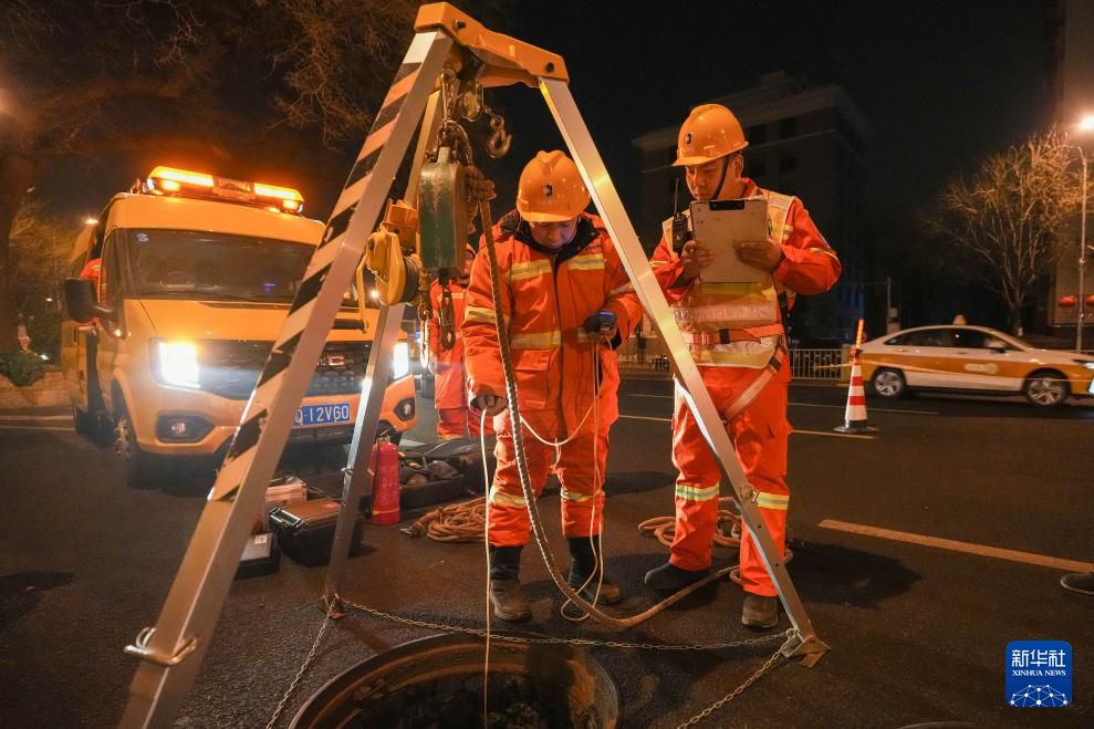 2月4日0时53分许,京能集团北京热力输配分公司管网二所运行五班班组成员在地下11米深的热力井内进行听漏检测。