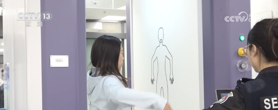 在国际安检区域,这是今年春运首次投用的A3毫米波门,“A3”是民航局最高级别安检认证。采用非接触式快速扫描,通常情况下3秒就能完成一个人的检测,还会生成全息成像图,要是有需要检查的部位,会在卡通人偶图上精准标记,保护了旅客的隐私。