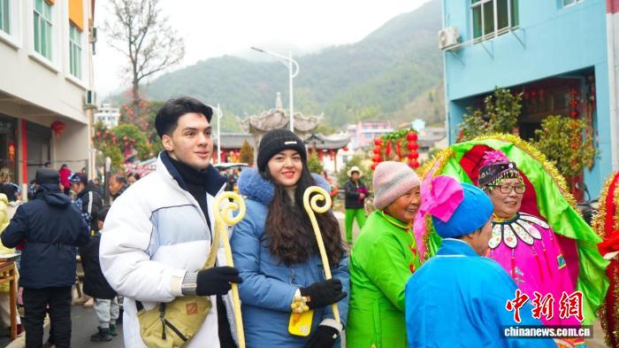 留学生在新西坑村体验民俗活动。 陶韬 供图