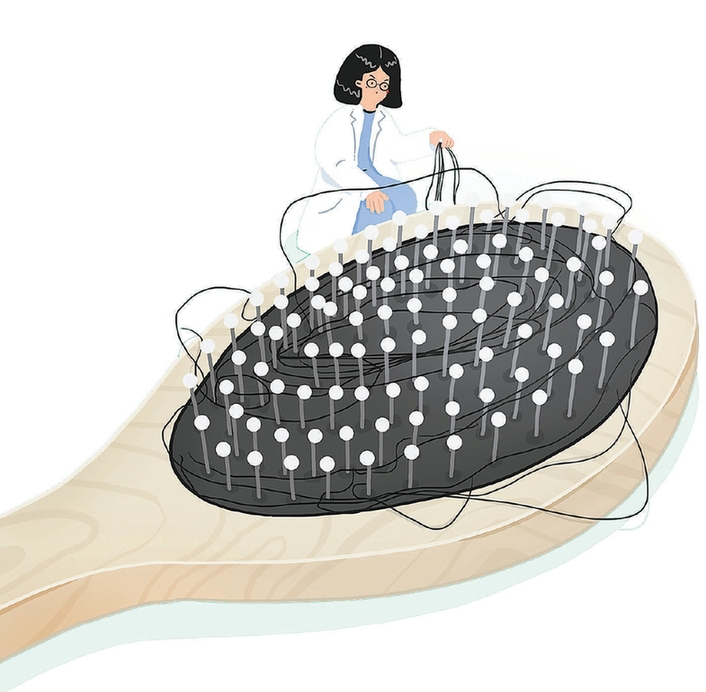 头发有两个核心结构:毛囊和毛乳头细胞。毛囊相当于头发的“专属生产基地”,负责制造头发。毛囊里最核心的部件是毛乳头细胞,它就像生产基地里的工人:一方面给头发输送生长必需的蛋白质、维生素等营养,另一方面指挥毛囊持续工作、制造头发。在这两个核心结构的支持下,头发的生长会经历“生长期、退行期、休止期”3个循环阶段,健康人群每天会有50-100根头发自然脱落(进入休止期),同时有等量新头发从毛囊里长出来,形成动态平衡,这就是头发能维持茂盛的关键。