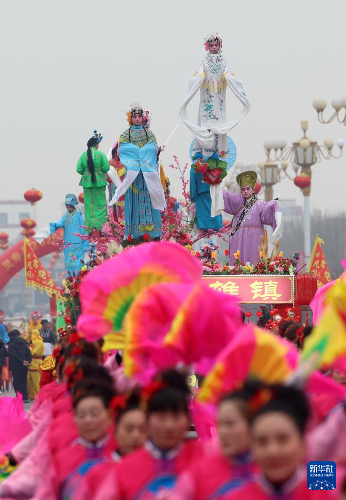 2月26日,人们在河北省灵寿县2026年新春民间艺术巡游展演活动中表演秧歌。