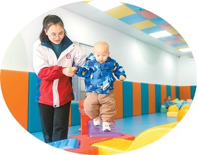 图为近日,在天柱县妇幼保健院托育中心,孩子们在老师陪伴下玩游戏。