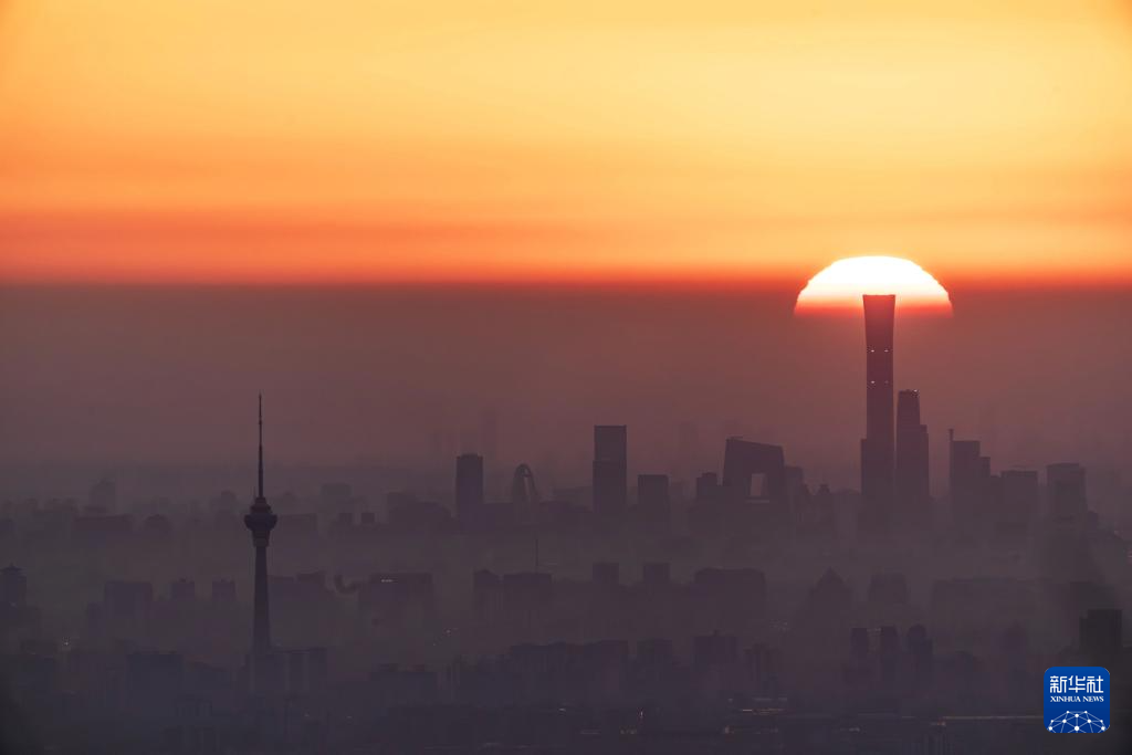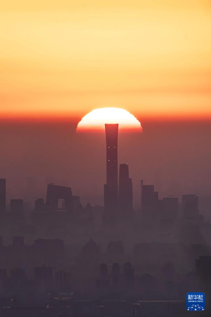 3月20日在北京定都阁附近拍摄的日出。