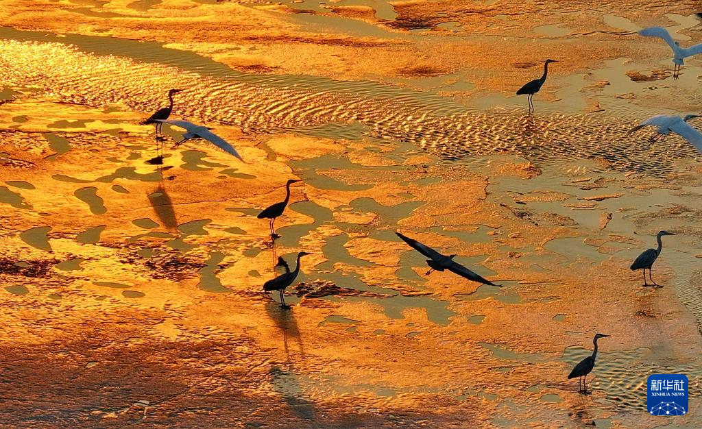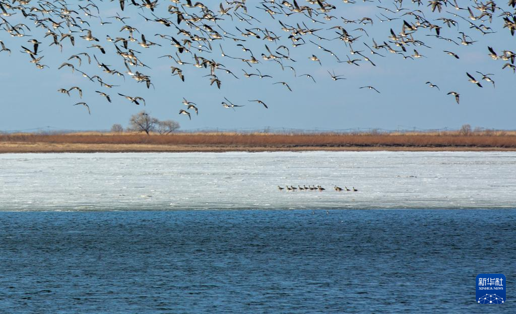 随着春日回暖,内蒙古鄂尔多斯市达拉特旗境内的黄河湿地迎来候鸟迁徙季。