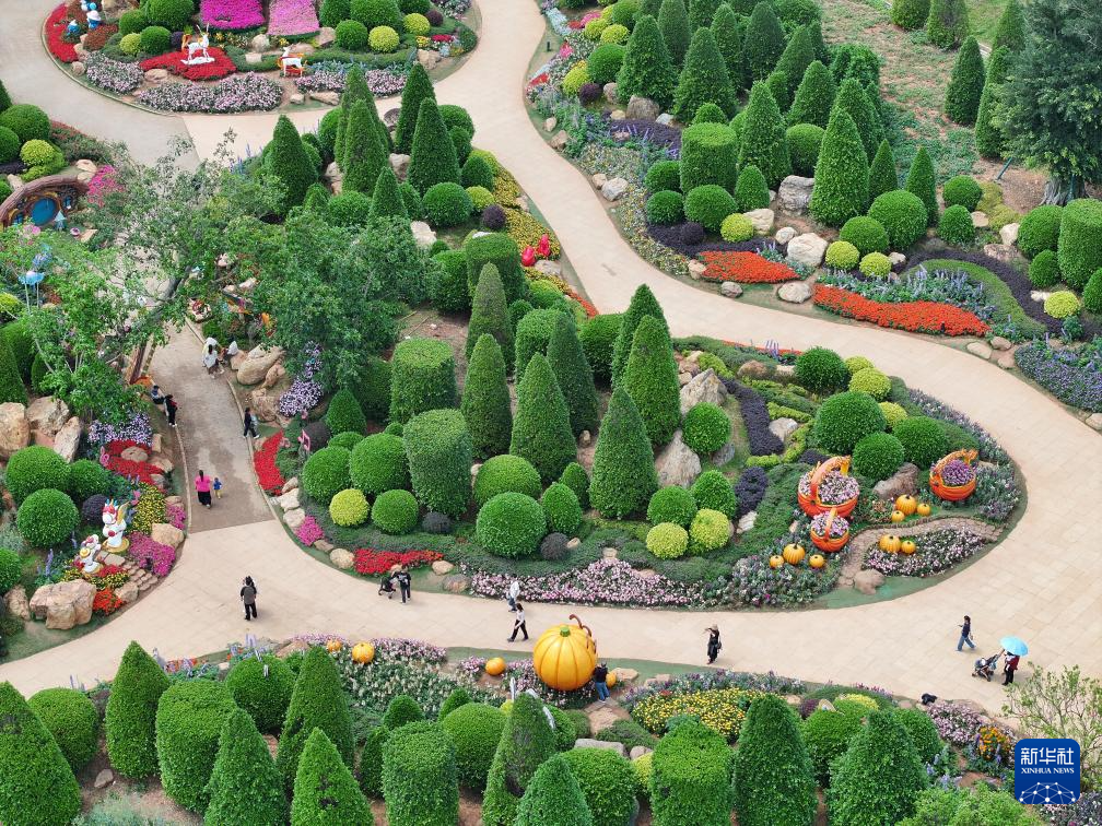 3月23日,游人在广西南宁市青秀山风景区踏春赏花(无人机照片)。