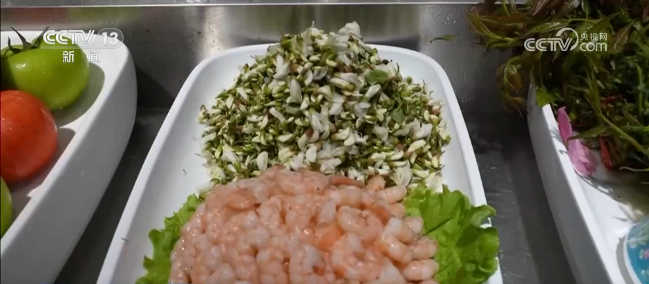 凉拌槐花清爽解腻,槐花汤色泽清亮,入口鲜爽温润,还有槐花饺子、槐花蒸菜等都让食客们赞不绝口。